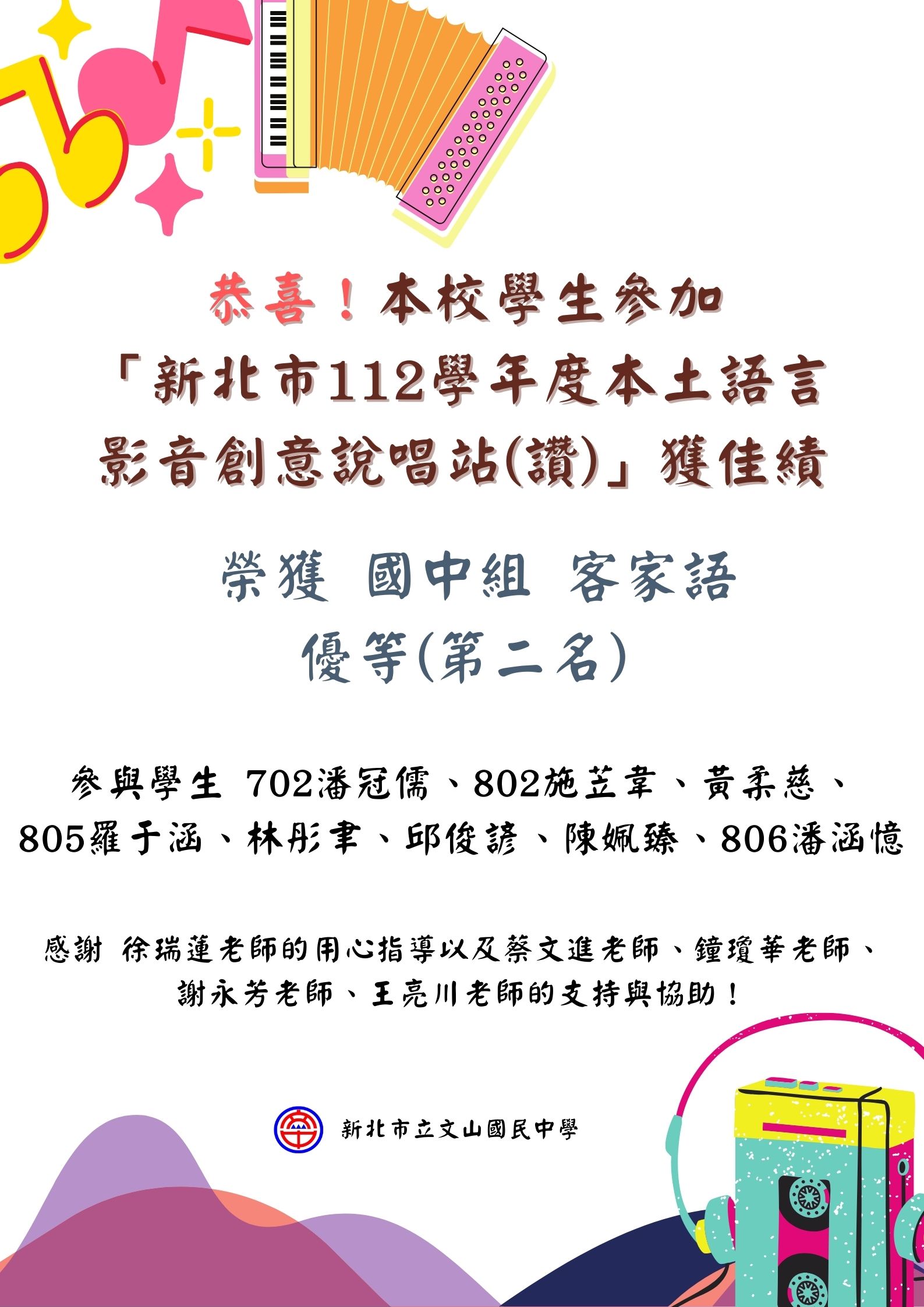 新北市112學年度本土語言影音創意說唱站(讚)獲得 國中客語組 優等(第二名).jpg