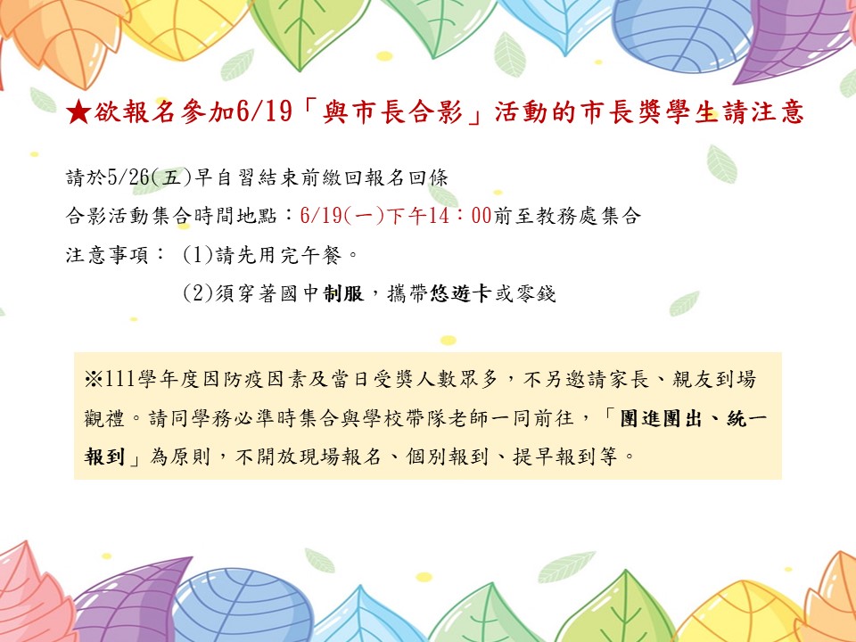 新北市立文山國民中學111學年度市長獎名單公告
