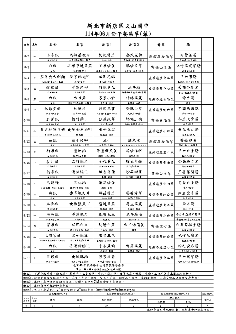 114年6月菜單(葷)